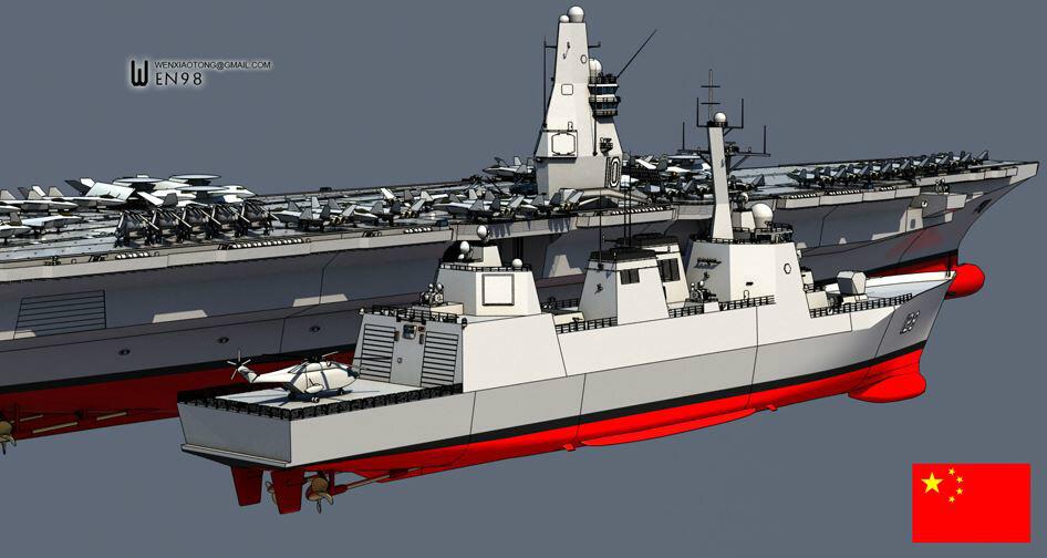 I can’t read any Chinese, so I can’t find the correct link, but the article is about (I guess) the future Type 055 Guided Missile Destroyer. That would be the ship in the foreground. And if you say to yourself, “Whoa, that looks a lot like a USN DDG-51!” you’re not alone.